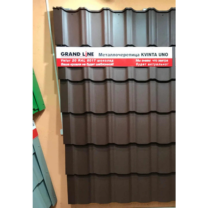 Металлочерепица Grand Line Kvinta Uno 0,5 Velur RAL 8017 Шоколад - это качественное и надежное покрытие для крыши вашего дома. Она изготовлена из металла высокого качества, что обеспечивает ей долговечность и стойкость к различным погодным условиям. Эта металлочерепица имеет толщину 0,5 мм, что делает ее легкой и удобной в установке. Она имеет велюровое покрытие, которое придает ей элегантный и стильный вид. Цвет RAL 8017 Шоколад добавляет теплоты и уюта вашему дому. Grand Line Kvinta Uno 0,5 Velur RAL 8017 Шоколад обладает высокой степенью защиты от коррозии и ультрафиолетовых лучей, что делает ее идеальным выбором для использования на открытых пространствах. Она также обладает отличными звукоизоляционными свойствами, что помогает снизить шум от дождя или града. Эта металлочерепица легко монтируется и не требует особого ухода. Она не подвержена гниению, плесени или образованию мха, что делает ее идеальным выбором для долговечной и надежной крыши. Grand Line Kvinta Uno 0,5 Velur RAL 8017 Шоколад - это отличное решение для тех, кто ищет качественное и стильное покрытие для своей крыши. Она обеспечивает надежную защиту от погодных условий и придает вашему дому элегантный вид.