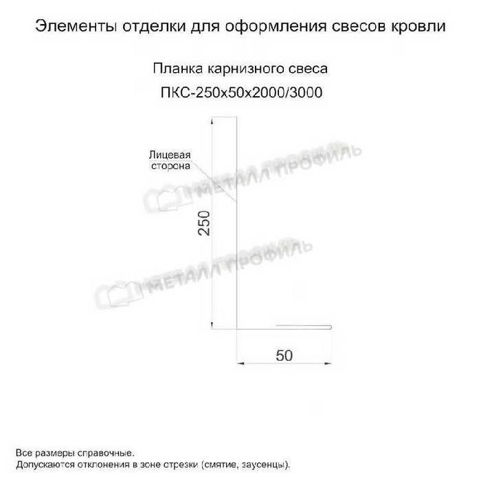 Планка карнизного свеса 250х50х2000 (ПЭ-01-9003-0.45)