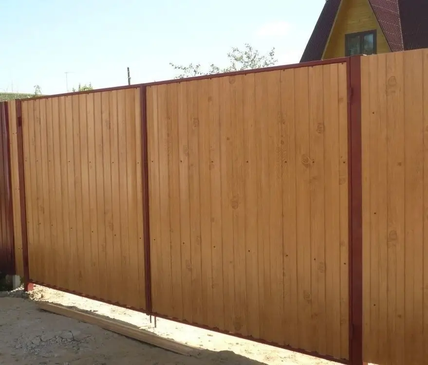 Цвет профилированного листа - сосна, что придает ему естественный и стильный вид. Он идеально подходит для использования в строительстве загородных домов, беседок, гаражей и других объектов.