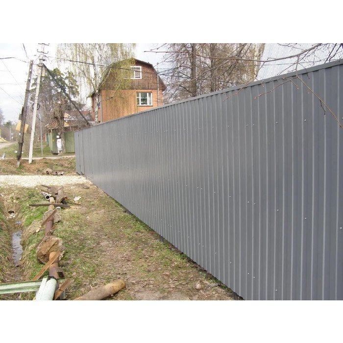 Профиль МП-20 имеет толщину 0,45 мм, что обеспечивает надежность и долговечность конструкции. Полиэстеровое покрытие RAL 7004 Серый придает материалу эстетичный внешний вид и защищает его от воздействия атмосферных условий.