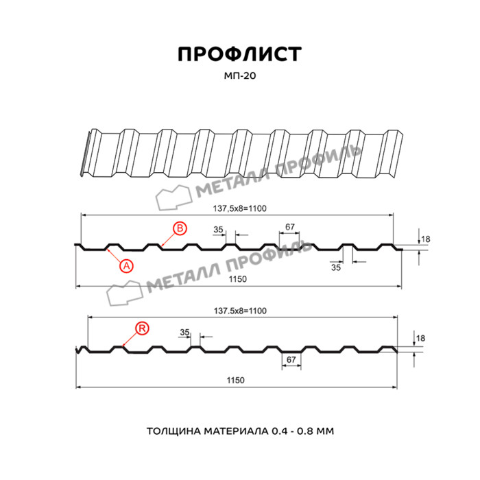 Профиль МП-20 имеет толщину 0,7 мм, что обеспечивает прочность и долговечность конструкции.