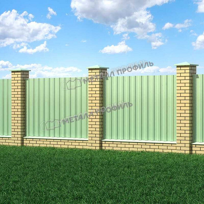 Цвет профлиста - RAL 6019 Зеленая пастель, что придает ему эстетичный и стильный вид. Этот оттенок идеально подходит для различных типов зданий и сочетается с разными цветовыми решениями.